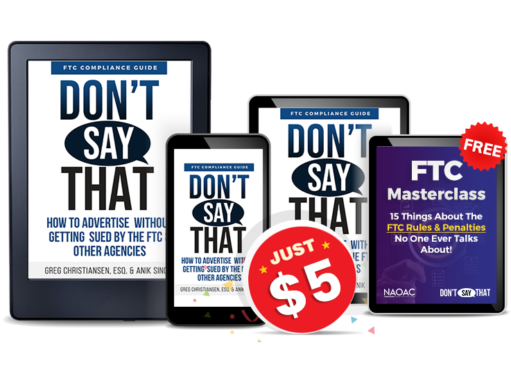 In Don’t Say That! FTC attorney Greg Christiansen and digital marketing expert Anik Singal team up to share the good news of compliance - not only can you market your business legally, ethically, and compliantly, but you can also acquire better quality customers and increase conversions at the same time.